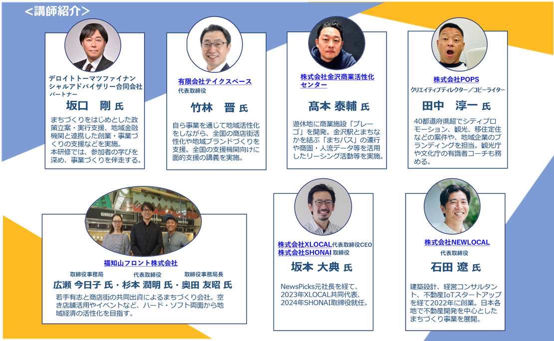 まちづくりの基礎知識から先進的な事例まで幅広く学びたい方、地域の課題解決や未来のまちづくりに長く貢献していきたい方は、是非参加ください。