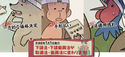 中小企業、個人事業主の味方、「下請法」が改正され、2026年1月1日から「中小受託取引適正化法(取適法)」に変わります。