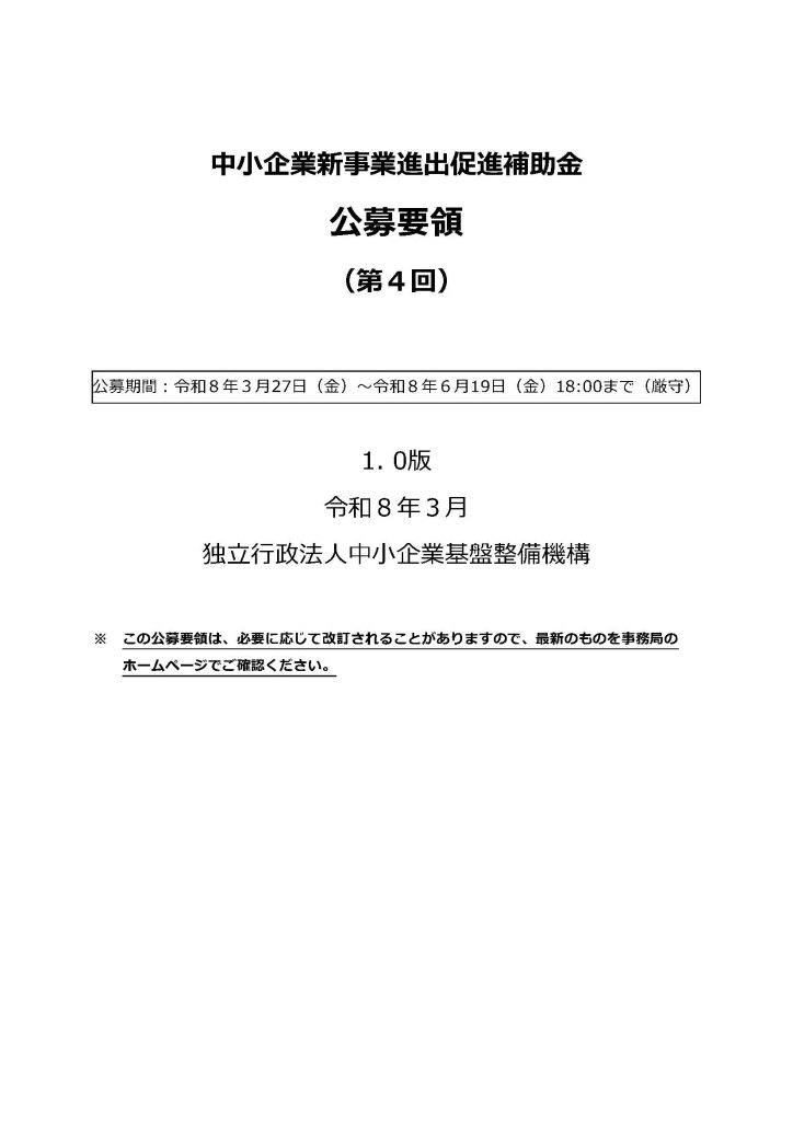 新事業進出補助金の公募要領を公開しています。
